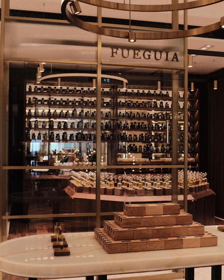 Pensati appositamente per l'avamposto Londinese di Fueguia 1833, i mobili espositori dei quali FORO Studio ha curato il progetto esecutivo, distinguono il corner del marchio all'interno del Salon de Parfums, al sesto piano del celebre department store Harrods.