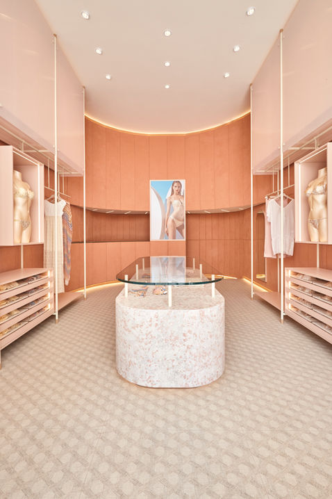 A Forte dei Marmi FORO Studio ha concepito lo spazio come uno scrigno prezioso. Il volume fruibile è caratterizzato da una quinta imbottita ad emiciclo, pensata per "abbracciare" gli avventori e offrire un ambiente intimo e invitante.